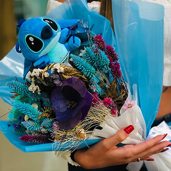 Buquê de Flores Secas e Stitch